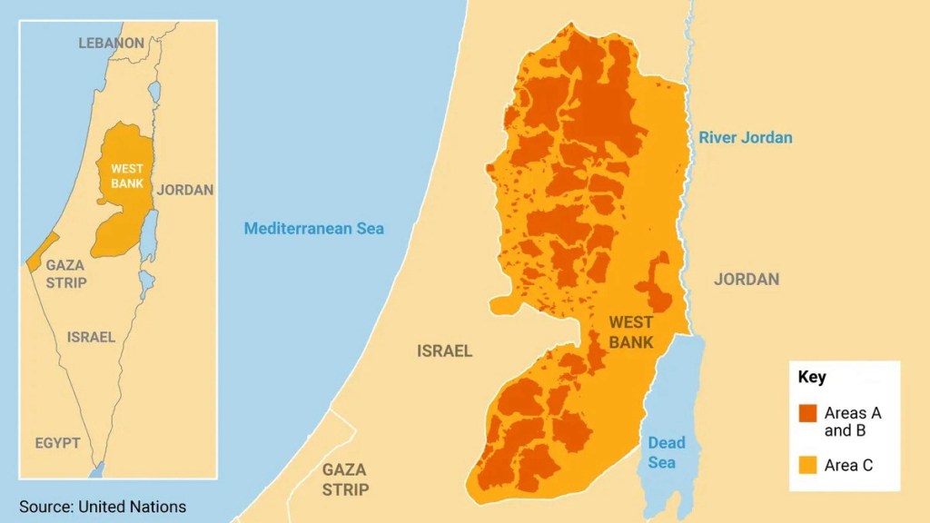 1990’lardaki Oslo Anlaşmaları uyarınca, Filistin Yönetimi adlı bir hükümet, Batı Şeria’daki Filistinli nüfus merkezleri üzerinde polislik ve güvenlik gibi bazı yetkilere sahip. Bu bölgeler “A” ve “B” Bölgeleri olarak bilinir. “C Bölgesi” olarak bilinen diğer tüm bölgeler İsrail’in kontrolü altındadır. C Bölgesi, Batı Şeria’nın %60’ından fazlasını kaplar.