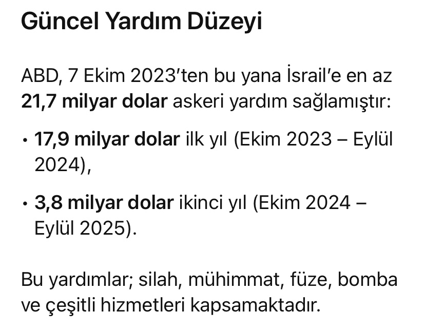 Quincy Institute ve Brown Üniversitesi’nin Costs of War projesi tarafından ortaklaşa yayımlanan bu rapor, 7 Ekim 2023 ile 24 Eylül 2025 tarihleri arasında ABD’nin İsrail’e sağladığı 21,7 milyar dolarlık askeri yardımı mercek altına almaktadır.