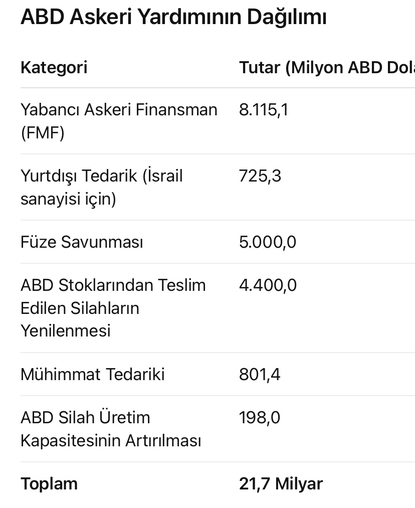 Bu rakamlar, ABD’nin yalnızca İsrail’e değil, bölgesel askeri varlığına da ne denli kaynak aktardığını göstermektedir.