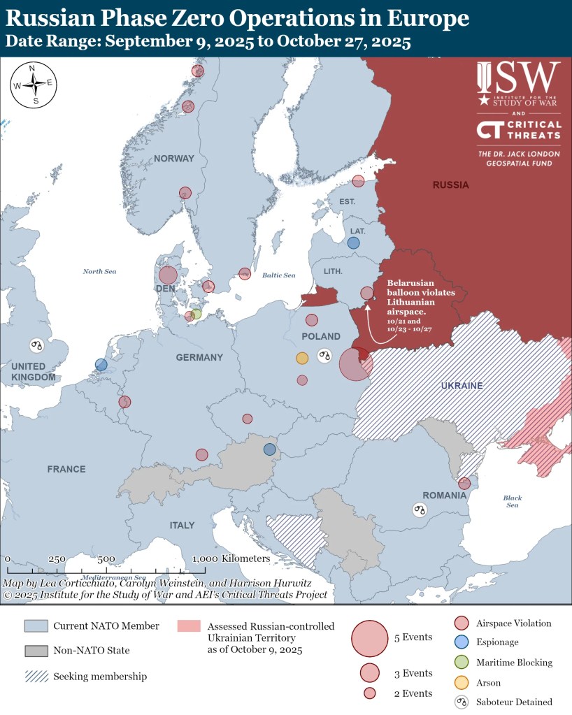 Bu gelişmeler, Institute for the Study of War (ISW) tarafından tanımlanan “Phase Zero” (sıfırıncı aşama) kavramsal çerçevesi içinde analiz ediliyor. ISW’nin Eylül–Ekim 2025 tarihli raporuna göre, Rusya Federasyonu Avrupa’da “savaş öncesi hazırlık aşaması” olarak tanımlanan bu dönemde bilgi, psikolojik ve hibrit operasyonlara ağırlık veriyor. Bu tür faaliyetlerin amacı, doğrudan askeri çatışmaya girmeden önce hedef bölgelerde siyasi, toplumsal ve psikolojik zemin hazırlamak.