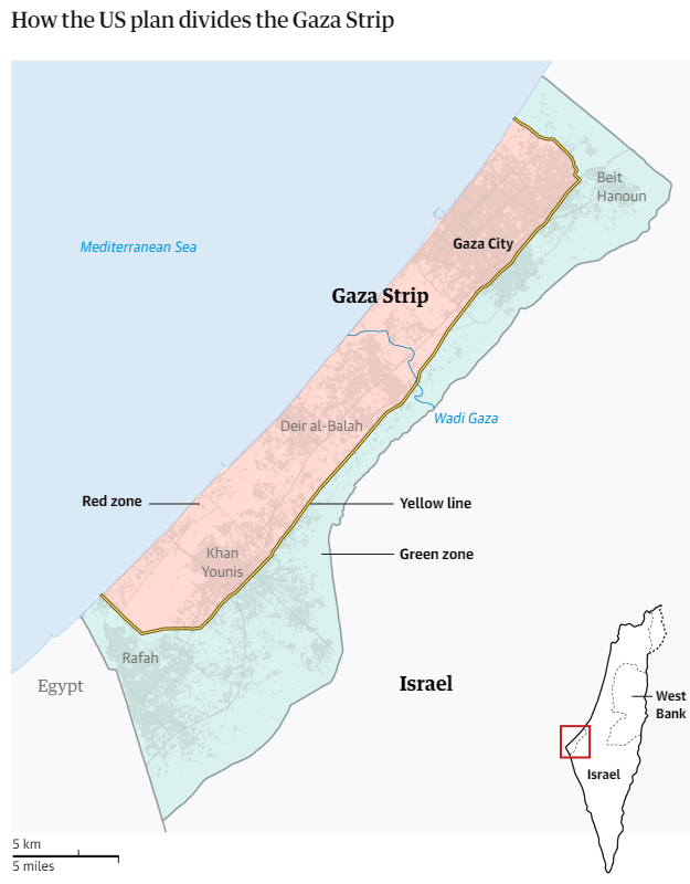 ABD’li yetkililer, ideal çözümün Gazze’nin yeniden birleşmesi olduğunu belirtse de bunun kısa vadede mümkün olmadığını kabul ediyor. Bu çerçevede, yeniden yapılanmanın yalnızca “yeşil bölge”de başlatılması ve geri kalan bölgelerin belirsiz bir süre boyunca savaş sonrası yıkım içinde bırakılması, Gazze’nin fiilen uzun dönemli bir bölünmeye itilmesi anlamına geliyor. Planın bu yönü, özellikle Irak ve Afganistan’daki “green zone” uygulamalarını hatırlatıyor; bu bölgeler zamanla güvenlikli adacıklar haline gelmiş, şehirlerin geri kalanı ise derin çatışmaların etkisi altında kalmıştı.