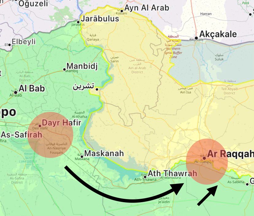 Sonrasında Halep’in doğusundaki Deyr Hafir ve Meskene hattı, terör örgütü YPG’nin çöküşünü hızlandırdı. Fırat nehri boyunca Tabka, Rakka ve Deyr ez Zor YPG’den Şam’ın kontrolüne geçti. YPG Suriye Ordusu ile çatışmadan geri çekilmek zorunda kalmış kendisi açısından son derece önemli bir bölgeleri bırakmak zorunda kaldı.